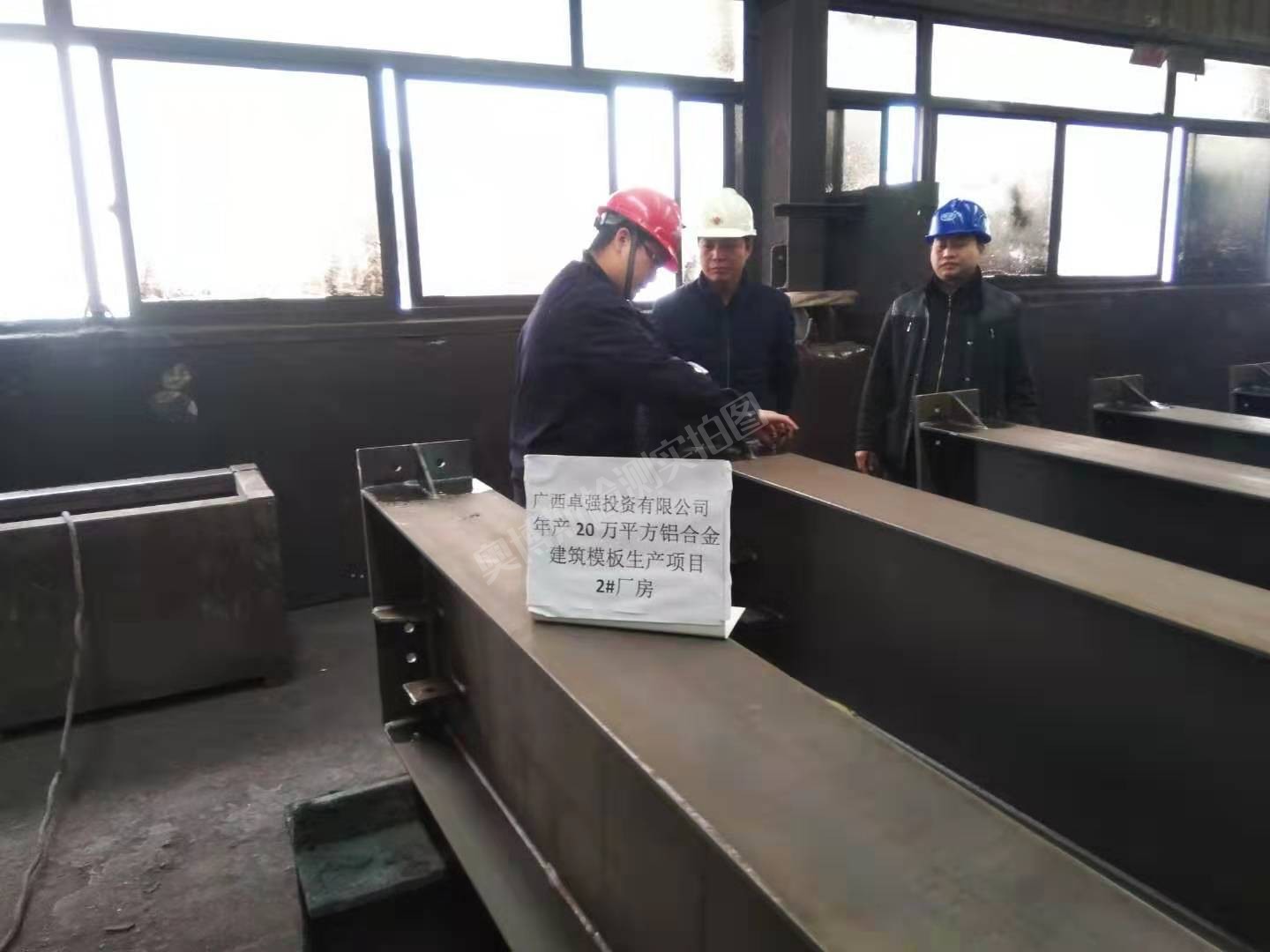 扶綏豐原中巢鋼構(gòu)-廣西卓強(qiáng)投資有限公司年產(chǎn)20萬平方鋁合金建筑模板生產(chǎn)項(xiàng)目2#廠房檢測(cè)現(xiàn)場(chǎng)