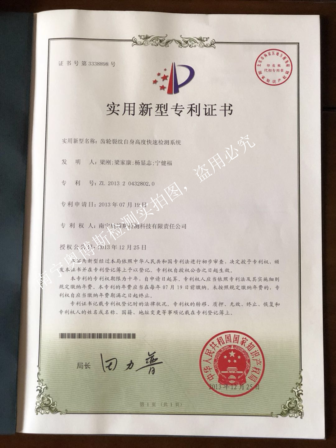 齒輪裂紋自身高度快速檢測(cè)系統(tǒng)