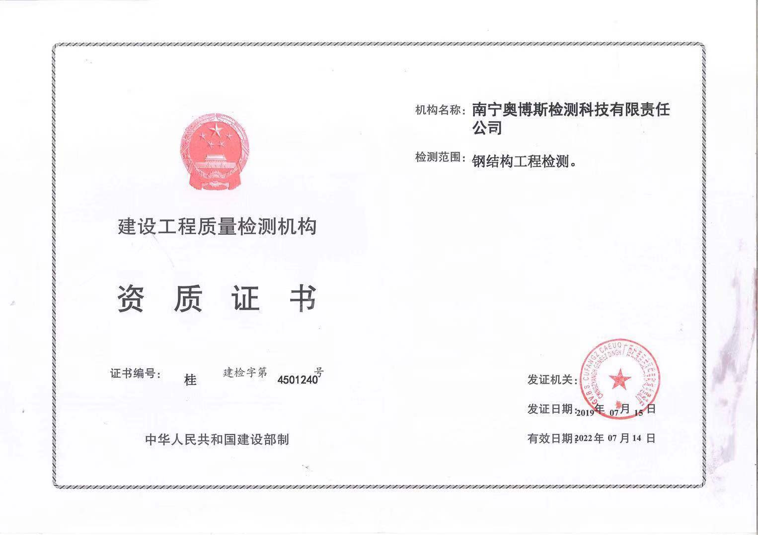 建設(shè)工程質(zhì)量檢測機構(gòu)資質(zhì)證書